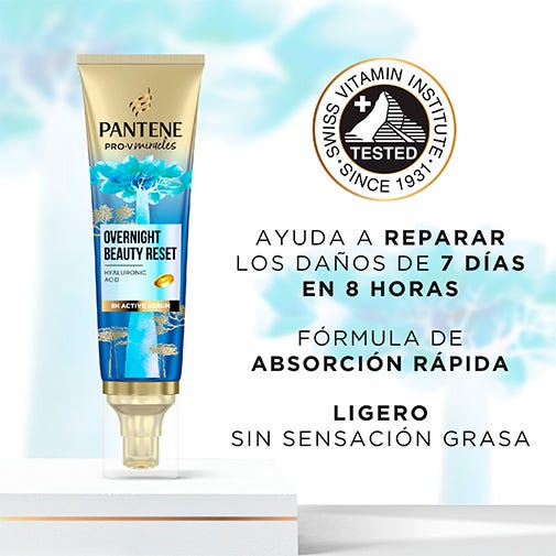 ¿Tu pelo necesita un milagro? Hidratación Y Brillo Beauty Reset de noche es el primer sérum de noche de Pantene para cabellos secos y dañados. ¡Repara los daños de 7 días en tan solo 8 horas! Consigue un pelo reparado mientras duermes con este sérum enriquecido con ácido hialurónico nutritivo.