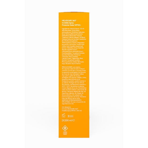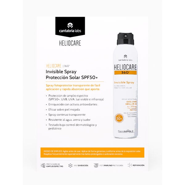 Este pack formato ahorro contiene dos Heliocare 360°º Invisible Spray: Fotoprotección transparente con amplio espectro (UVB, UVA, Visible e Infrarrojo).