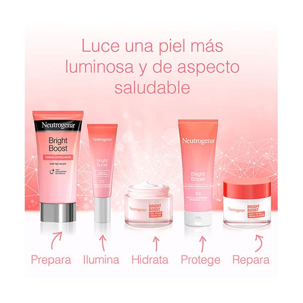 Crema Gel de Día: Neutrogena Bright Boost Crema Gel activa el proceso de renovación natural de la piel para ayudar a prevenir su envejecimiento y conseguir una piel visiblemente más saludable y luminosa.