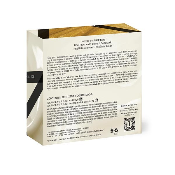 INGREDIENTS (Cuticel Oil): Persea Gratissima (Avocado) Oil, Ethylhexyl Palmitate, Vitis Vinifera (Grape) Seed Oil, Isopropyl Palmitate, Helianthus Annuus (Sunflower) Seed Oil, Lecithin, Sesamum Indicum (Sesame) Seed Oil, Caprylic/Capric Triglyceride, Parfum/Fragrance, Aleurites Moluccana Seed Oil, Limonene, BHT, Alcohol, Oleic Acid, Sunflower Seed Oil Glycerides, Linalool, Citronellol, Theobroma Grandiflorum Seed Butter, Ascorbyl Palmitate, Tocopherol, Geraniol, Citral, Ricinus Communis (Castor) Seed Oil, Camellia Sinensis Leaf Extract, Yellow 5 (CI 19140).