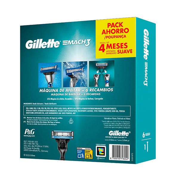 PACK AHORRO: Gillette Mach3 1 Maquinilla De Afeitar Para Hombre y 6 Recambios De 3 Hojas Para Maquinilla De Afeitar Mach3, Para Hasta 4 Meses De Afeitado Suave