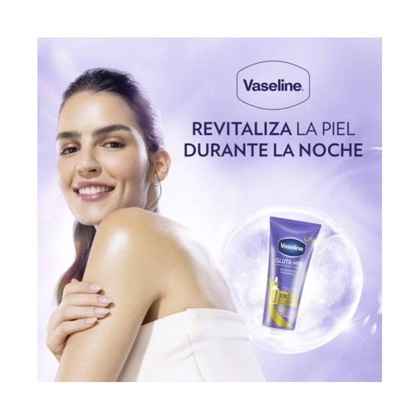 - Loción explosiva de suero brillante Gluta-Hya Overnight Radiance: Revive tu piel mientras duermes con el sérum corporal Vaseline Gluta-Hya Overnight Radiance. Su fórmula especial utiliza la tecnología GlutaGlow™, que contiene antioxidantes que son diez veces más efectivos que la vitamina C, para luchar contra la falta de brillo y proporcionar una piel brillante y radiante. Este sérum para el cuerpo también incluye ácido hialurónico, colágeno hidrolizado y vaselina, lo que mejora la hidratación de la piel y garantiza que la humedad se mantenga profundamente, al mismo tiempo que contribuye a reafirmar la piel fatigada.
