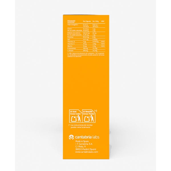 Los complementos alimenticios no deben utilizarse como sustituto de una dieta variada y equilibrada y un estilo de vida saludable. Mantener fuera del alcance de los niños más pequeños. Conservar por debajo de 30ºC protegido de la luz y humedad.
