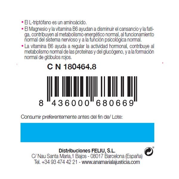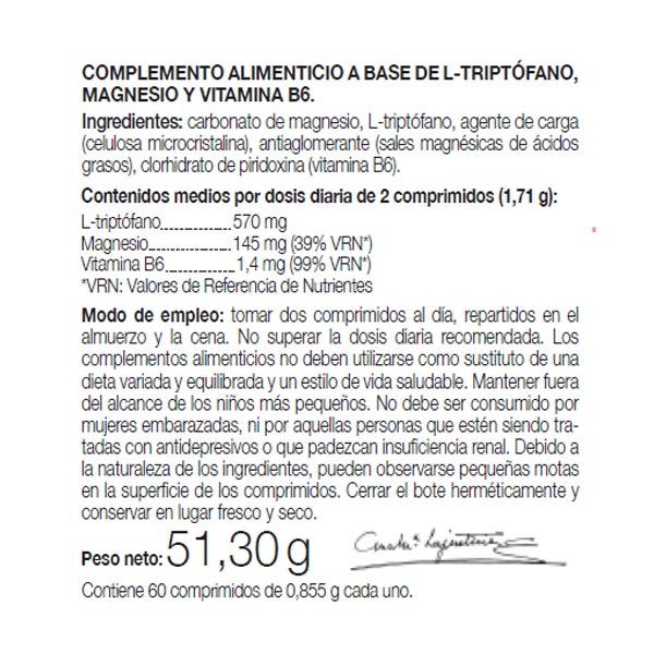 Ingredientes: carbonato de magnesio, L-triptófano, agente de carga