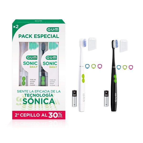 PACK ESPECIAL CEPILLOS SÓNICOS: GUM® SONIC DAILY BLANCO + GUM SONIC DAILY NEGRO