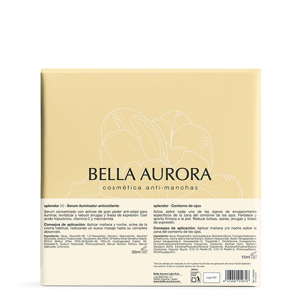 En este estuche encontrarás el serum splendor iluminador antioxidante y el contorno de ojos splendor de regalo.