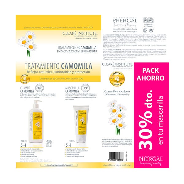 Clearé Institute Pack Ahorro Champú Camomila 400ml + Acondicionador 150ml.