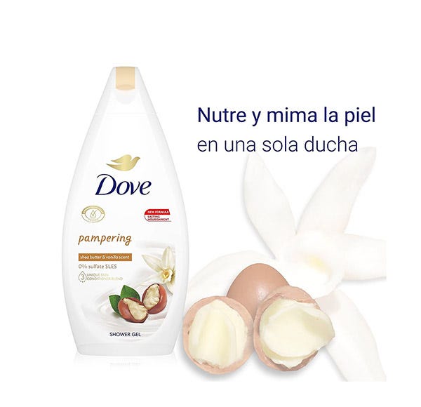 "Este gel de ducha hidratante suave te ayuda a convertir cada ducha en un acto de autocuidado, brindándote 24 horas de piel nutrida y suave como la seda. Esta fórmula utiliza una mezcla de limpiadores suaves de origen natural y nutrientes naturales de la piel para limpiarla suavemente y nutrir tu microbioma. Además, está libre de sulfatos SLES, tiene un 98%* de ingredientes biodegradables, está envasado en botellas de plástico reciclado al 100%** y está aprobado por PETA como vegano.