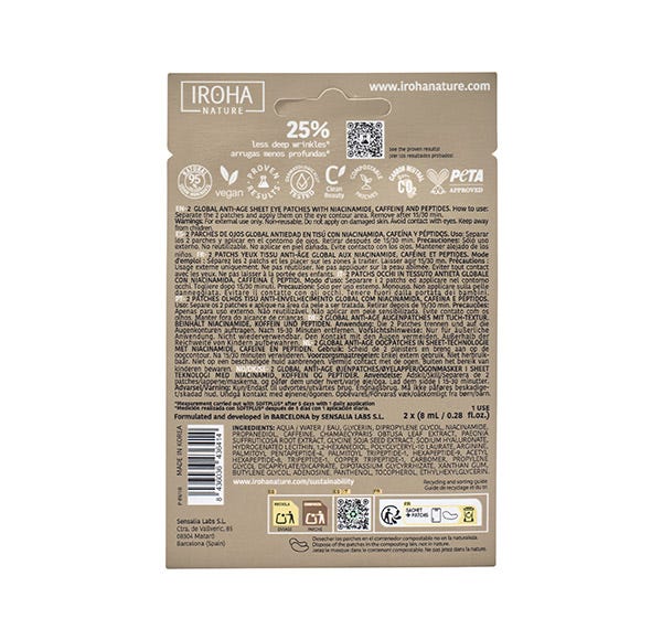 Los nuevos parches de ojos Cuidado Global de Iroha Nature ayudan a disminuir arrugas, bolsas y ojeras del contorno gracias a los activos que contiene.