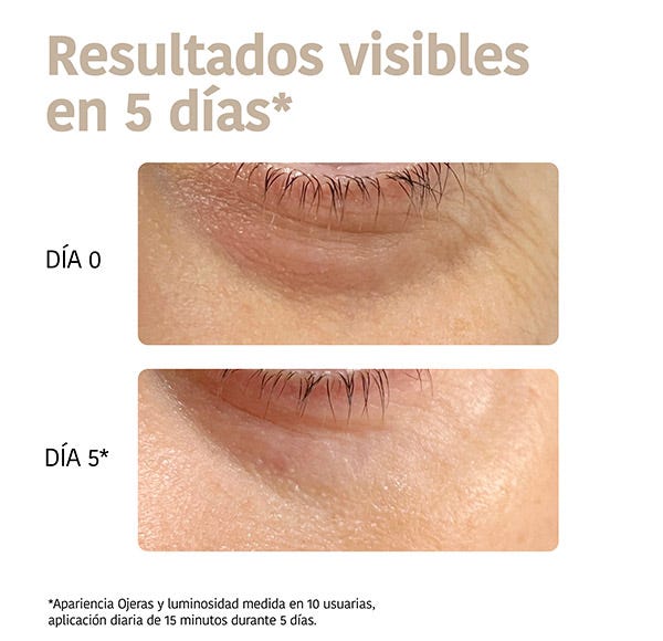 Entre sus principales activos se encuentra la Niacinamida, que posee propiedades antioxidantes y activadoras de la regeneración celular, reduciendo así las ojeras y haciendo que el contorno de ojos luzca un aspecto más joven e iluminado.