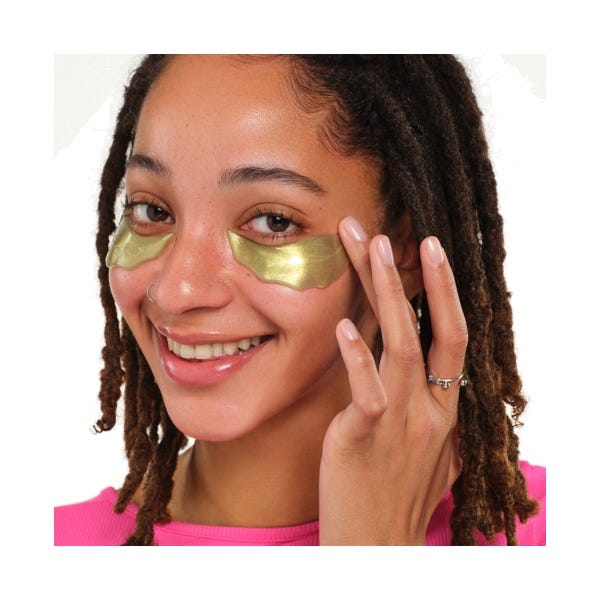 Su fórmula con extracto de té verde, cafeína y niacinamida contribuye a reducir la hinchazón, mejorar la luminosidad y potenciar el brillo natural del contorno de ojos. La textura de hidrogel suave y ultracómoda se adapta perfectamente a la piel, proporcionando una sensación refrescante y relajante.