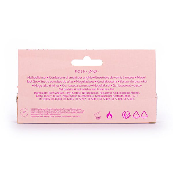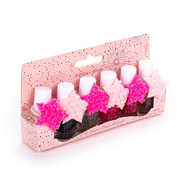 Set de esmaltes de uñas, compuesto por 6 esmaltes de diferentes colores.