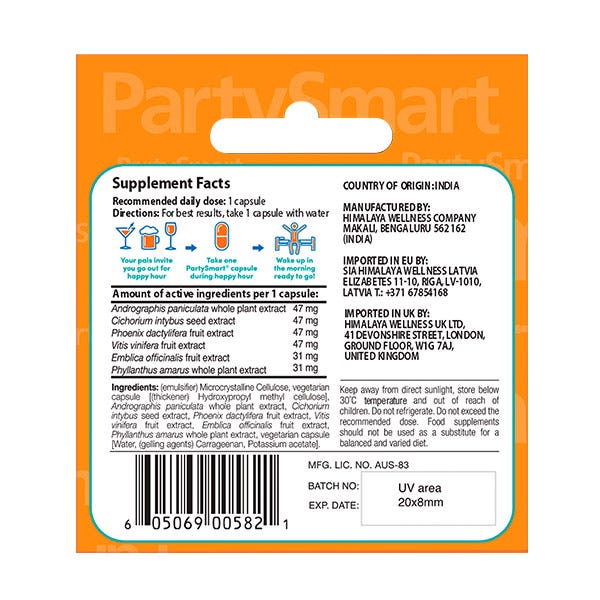 ¡Devuelve la diversión a tus celebraciones! PartySmart te facilita la mañana después de una noche de fiesta. Las hierbas de PartySmart apoyan las funciones del hígado mientras duermes, para que te despiertes con sonrisas, comodidad y energía.