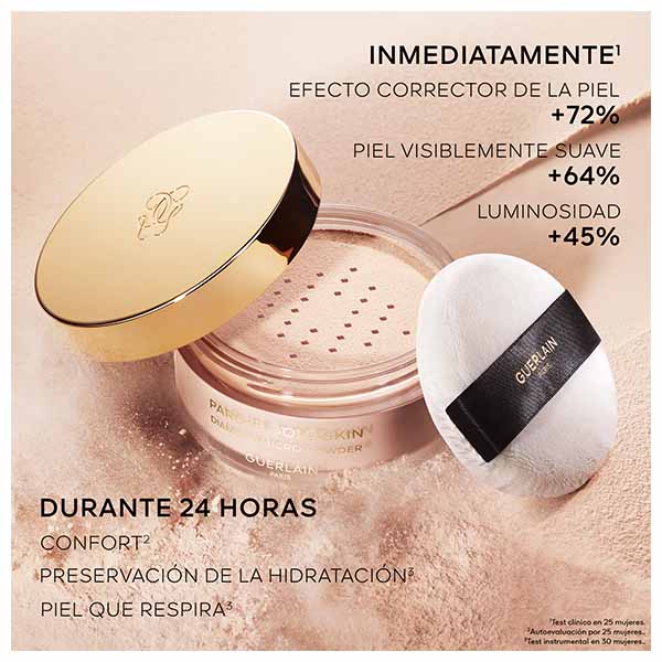 Guerlain ha creado los polvos sueltos Parure Gold Skin Diamond Micro-Powder como toque final del ritual Parure Gold. Con su textura suave y ligera enriquecida con oro de 24 quilates y polvo de diamante, fijan el maquillaje, difuminan la tez y la iluminan con total transparencia.