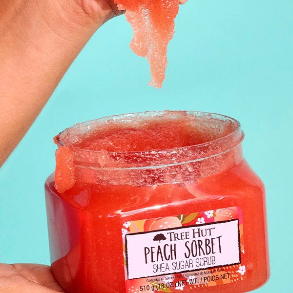 ¡Revela una piel suave y radiante con el dulce y jugoso aroma de Peach Sorbet!