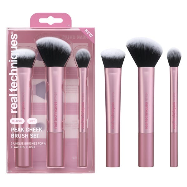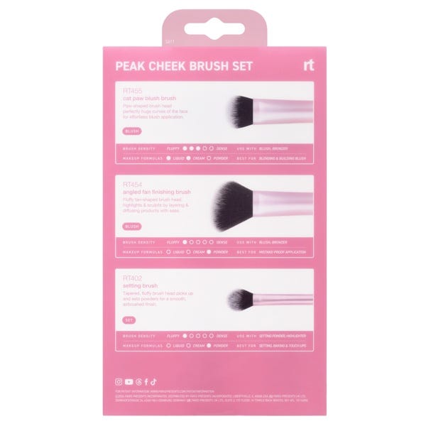 El set de brochas Real Techniques Peak Cheek Brush Set incluye 3 accesorios únicos para dar forma, difuminar y finalizar el maquillaje de mejillas con facilidad. Ya sea que busques un rubor natural o un iluminado esculpido, este set te brinda el control para personalizar tu brillo.