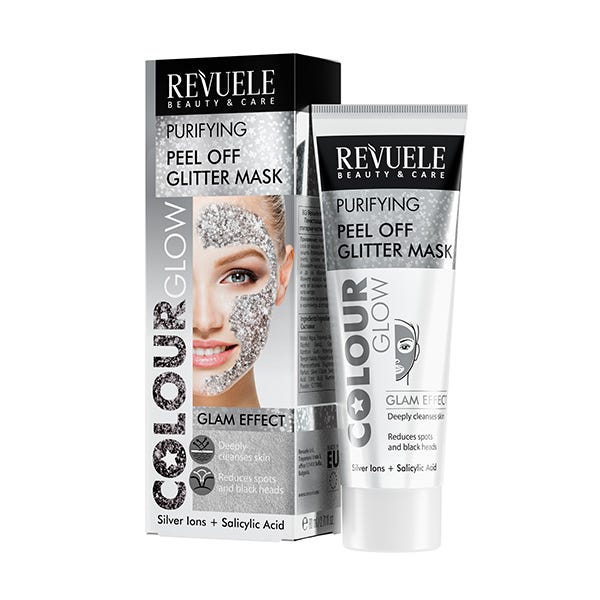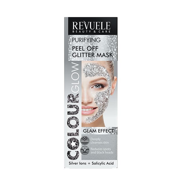 REVUELE COLOR GLOW SILVER PURIFYING PEEL OFF GLITTER MASK.