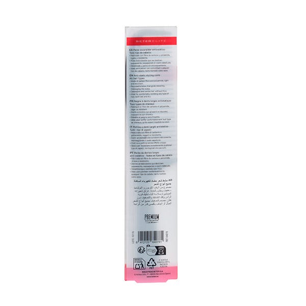 Fabricado con fibra de carbono y poliamida, ligero y resistente.Púas redondeadas que se deslizan suavemente, masajeando el cuero cabelludo. Desenreda y peina sin encrespamiento.
