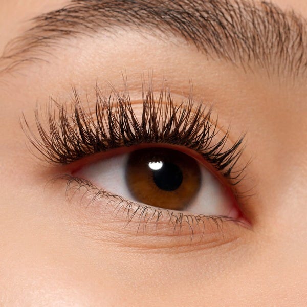 Aplica una fina capa de pegamento para pestañas a la banda de pestañas de las pestañas artificiales y déjala reposar durante unos segundos. Usando pinzas o dedos, coloca los grupos justo por encima de la línea natural de las pestañas y presiona suavemente para fijarlos. Deja que el pegamento se seque por completo antes de terminar el look. Para un efecto más natural, mezcle con la máscara de pestañas si lo desea. |