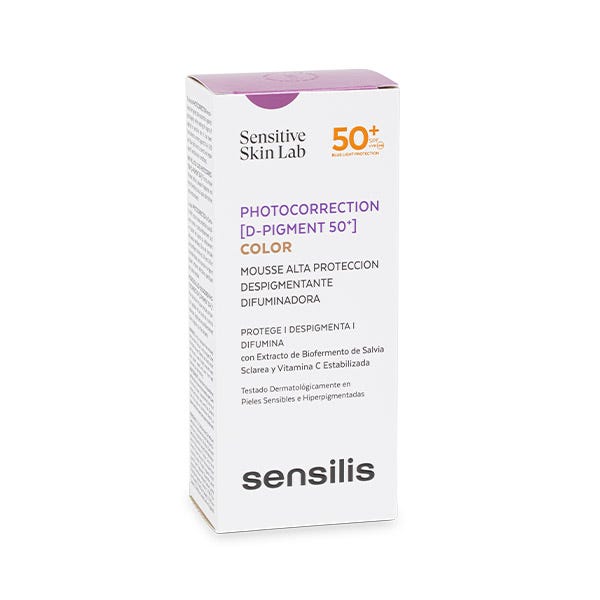 PHOTOCORRECTION [D-PIGMENT 50+] es una mousse con SPF50+ de alta protección que protege frente al UVA, UVB y luz azul corrigiendo las manchas de las pieles sensibles hiperpigmentadas.