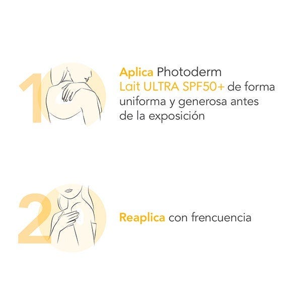 Photoderm Lait ULTRA SPF50+: ofrece una protección optimizada muy alta frente a los rayos UVA/UVB, activa las defensas naturales de la piel y la protege del daño celular. Para toda la familia.