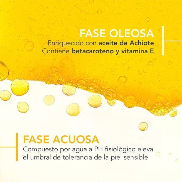 Con el Agua Solar hidra-protectora contiene antioxidantes que previenen el daño celular y el envejecimiento prematuro de la piel. Fórmula bifásica (fase acuosa y fase aceitosa) para piel sensible.
