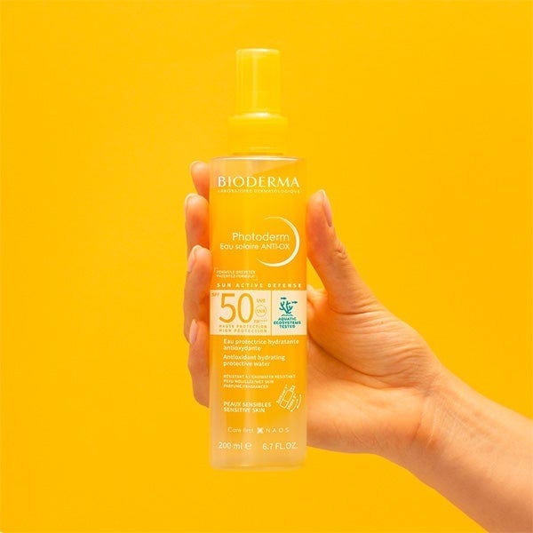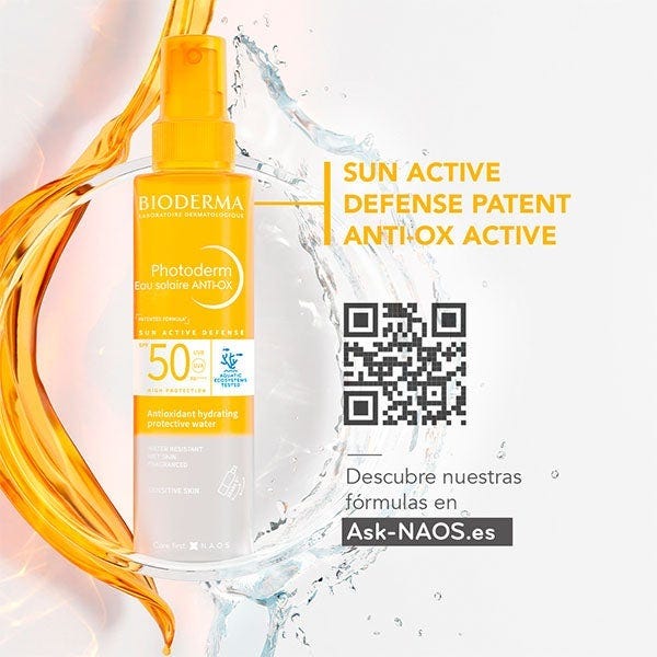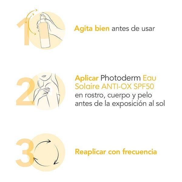 Photoderm Agua Solar ANTI-OX SPF50 es un agua solar que hidrata la piel y ofrece una alta protección solar frente a los rayos UVA/UVB.