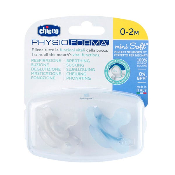 Chupete Chicco Physioforma Minisoft diseñado especialmente para bebés recién nacidos. Es pequeño, de una sola pieza y fabricado con 100% de silicona, lo que lo hace fácil de limpiar y esterilizar. Su diseño suave y ergonómico, lo que garantiza una máxima comodidad para el bebé. Su diseño suave, ergonómico, compacto y ligero garantiza la máxima comodidad para el bebé y facilita su manipulación.