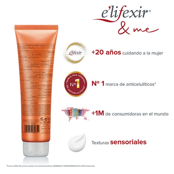 Cuida tu cuerpo, destaca tu belleza. Elifexir, marca más vendida mercado de anticelulíticos (Farmacia y Parafarmacia) en el año 2022 Sales Units. Fuente: IQVIA.