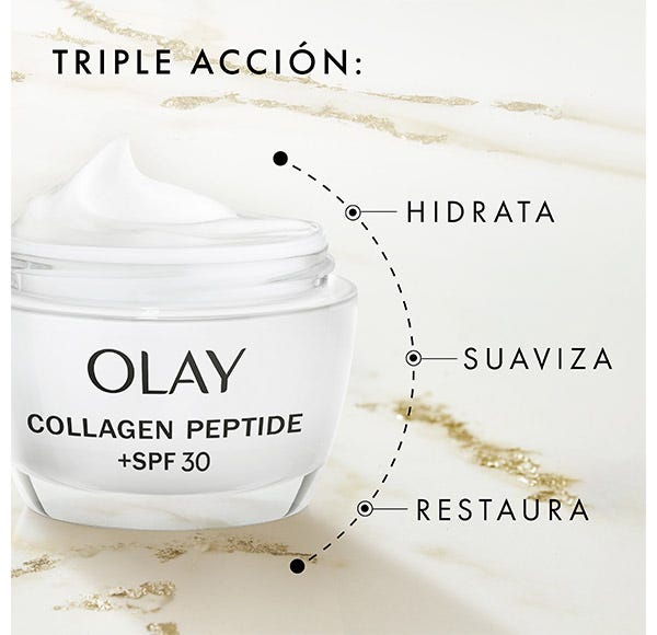 CREMA DE DÍA: Revela una piel visiblemente más fuerte y radiante en 14 días con la crema de día Olay Regenerist Collagen Peptide24 con SPF 30.