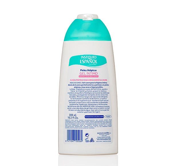 La base limpiadora y suave del Gel Íntimo para Pieles Atópicas ayuda a frenar la irritación y el picor, ya que no reseca y mantiene el equilibrio fisiológico activando las defensas naturales y protegiendo los tejidos de las zonas más sensibles. Minimiza riesgos de reacciones alérgicas.