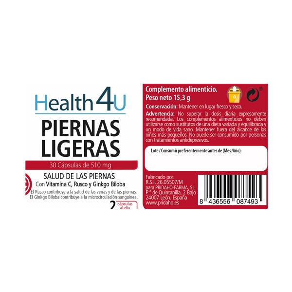 Con Vitamina C, Rusco y Ginkgo que contribuyen en la circulaciónn y mejora del descanso y bien estar natural para las piernas.
