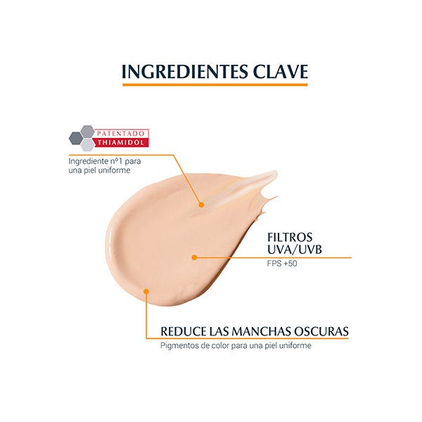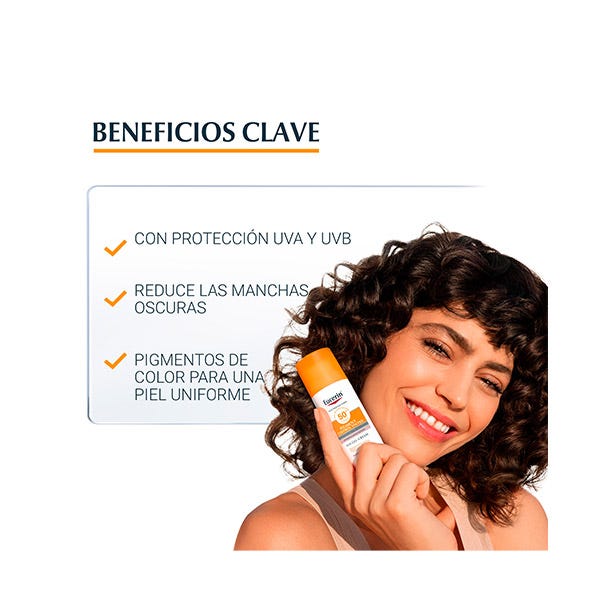 Fotoprotector con color claro FPS 50+, formulado para las personas con manchas de hiperpigmentación o con riesgo a padecerlas, para reducirlas y prevenir su aparición.