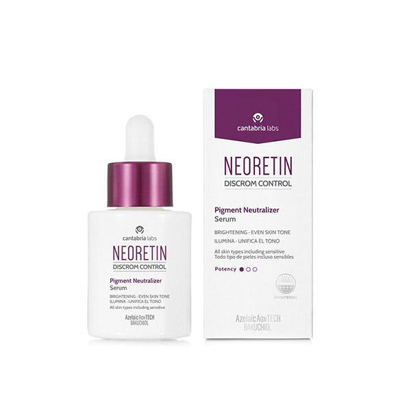 Sérum Discrom Control tratamiento unificador del tono e iluminador formulado con Azelaic Aox-Tech para unificar el tono, bakuchiol con actividad renovadora y ácido hialurónico para una hidratación long lasting.