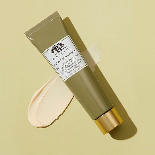 Prepara tu piel con el potente serum anti-edad Plantscription™. Aplica una cantidad del tamaño de un guisante de Plantscription™ hidratante de noche con retinol, evitando la zona de los ojos.