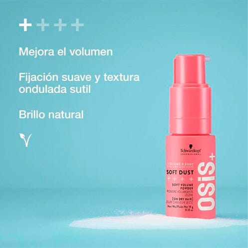OSiS Dust It es un polvo matificante que proporciona una fijación fuerte y un agarre instantáneo para un volumen invencible. Fijación fuerte