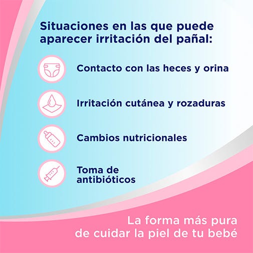 1. Aplicar una abundante capa sobre la piel limpia y seca del área del pañal de tu bebé.