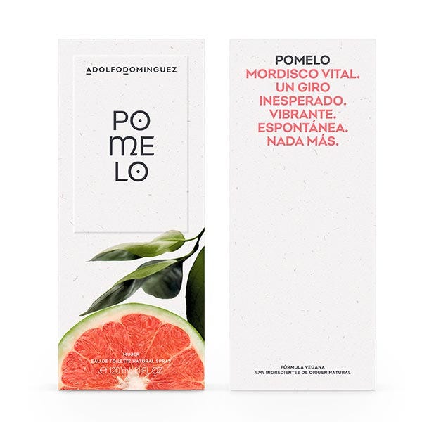 Eau de Toilette Edición Limitada Pomelo, Adolfo Domínguez. Combina la vitalidad del crítico con el dulzor de toques florales. Espontánea, fresca, irradia energía.