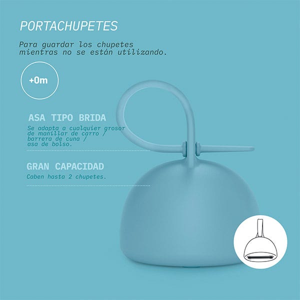 Portachupetes para guardar los chupetes, tetinas o accesorios hasta su próximo uso.