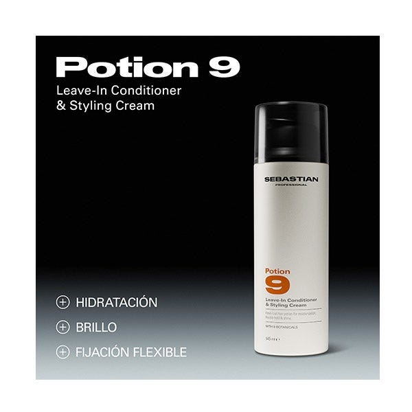 El tratamiento acondicionador de peinado sin aclarado Potion 9 de Sebastian Professional es nuestra nuestra icónica crema híbrida moldeadora y acondicionadora sin aclarado que aporta fijación flexible, hidratación y brillo; con una fórmula enriquecida con 9 extractos botánicos. Perfecta para usar por sí sola o en combinación con otros productos, mejora la textura y realza la forma del cabello, al tiempo que mantiene un movimiento natural y suave al tacto.