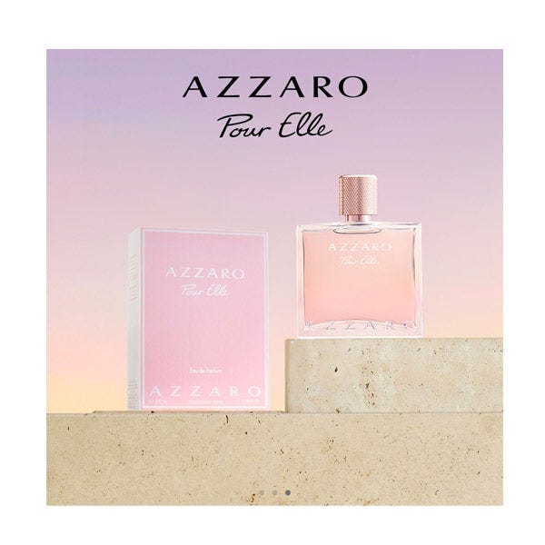 Como un macaron de rosa, Azzaro Pour Elle ofrece una nota dulce, un delicioso rayo de sol.