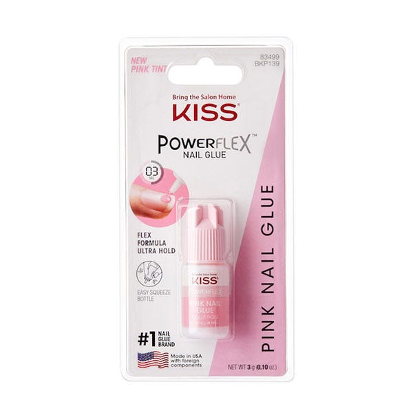 El pegamento de uñas en color rosa Powerflex permite ver dónde se aplica el pegamento y da a las uñas un brillo saludable.