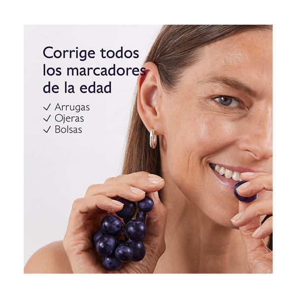 Su fórmula corrige todo tipo de arrugas del contorno de los ojos y de los labios, y su aplicador descongestionante reduce las ojeras y las bolsas para rejuvenecer visiblemente la mirada.