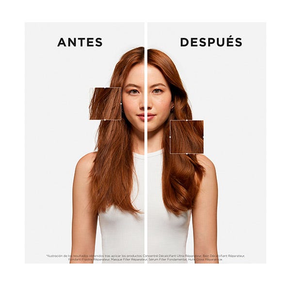 La gama Première, con su doble acción reparadora, rompe el ciclo de daño persistente en el cabello descalcificado con hasta un +97% de refuerzo de la estructura interna, recrea en un 99% la fuerza original del cabello* y ofrece una profunda penetración de activos en el interior de la fibra capilar para conseguir reducir el daño en la superficie y en el interior del cabello.