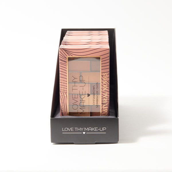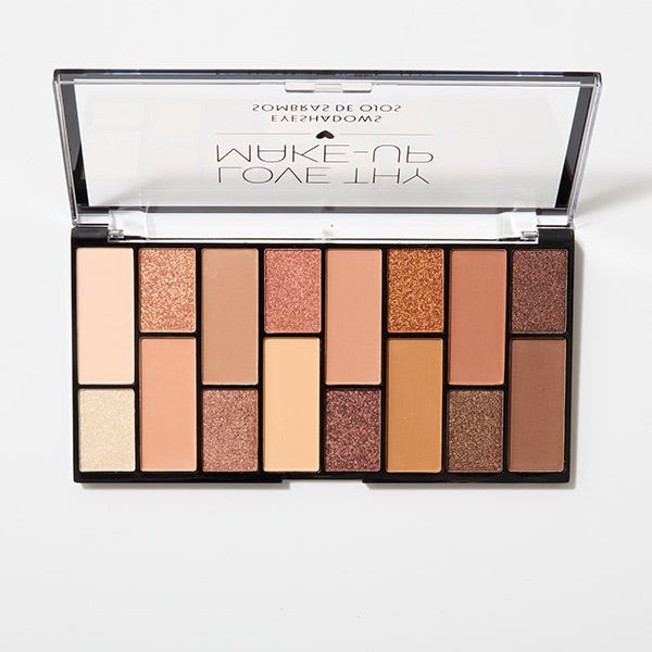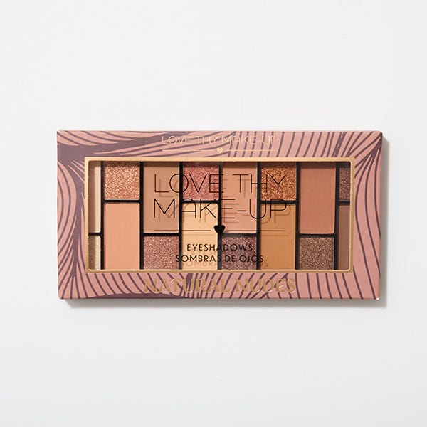 Paleta de nudes naturales con 16 tonos suaves shimmer y mate que usarás todos los días.