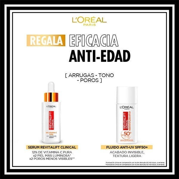 Con el Serum Vitamina C de Revitalift Clinical y el Fluido Anti-UV SPF50+, esta rutina previene el envejecimiento y proporciona una piel luminosa.
