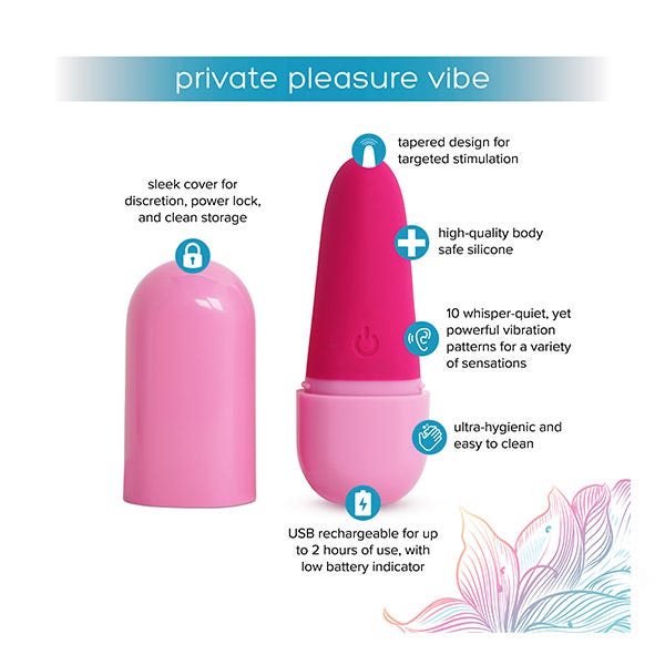 Private pleasure vibe es una bala vibradora. Mantén tu orgasmo en secreto con nuestro secreto de bienestar íntimo mejor guardado: la bala de placer privada plusOne®, nuestro vibrador más silencioso hasta el momento. Esta bala vibradora tiene una cubierta discreta y un motor silencioso para una estimulación discreta. Ya sea un tubo de lápiz labial o una bala vibradora, es para que lo sepas. Con 10 patrones de vibración potentes, obtienes una estimulación precisa justo donde la quieres. Si eres nuevo en el juego en solitario, este vibrador te resultará fácil de usar para que puedas concentrarte en sensaciones irresistibles. También se puede utilizar como el complemento perfecto para el juego en pareja. Deléitate con un placer discreto con nuestra bala de placer privada.