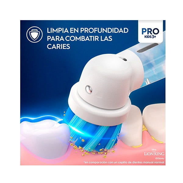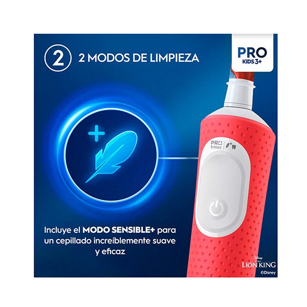 El cepillo de dientes eléctrico Oral-B Pro Kids, recomendado por dentistas para niños mayores de 3 años, proporciona una limpieza suave y eficaz. Con 2 modos de cepillado que incluyen un modo sensible único para niños, este cepillo limpia los dientes con suavidad. Elimina más placa que un cepillo de dientes manual normal. Incluye 4 pegatinas temáticas para personalizar el mango.