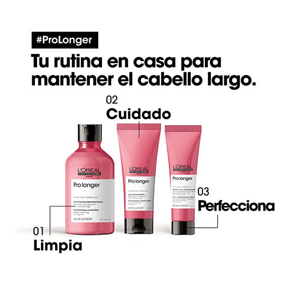 Potenciado con tecnología patentada FILLER-A100 y aminoácido, el acondicionador renovador de puntas de Serie Expert Pro Longer es el tratamiento perfecto para el cabello largo con puntas afinadas. La fibra se renueva instantáneamente y el cabello se vuelve más fuerte y brillante. Una vez a la semana sustituye tu Acondicionador Pro longer por el Concentrado Ends Filler para rellenar y espesar los extremos de forma duradera.