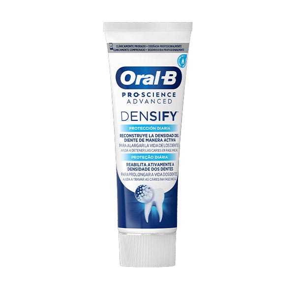 La pasta dentífrica Oral-B Pro-Science Densify aumenta la densidad del esmalte en cada cepillado para mantener tus dientes en buena condición.